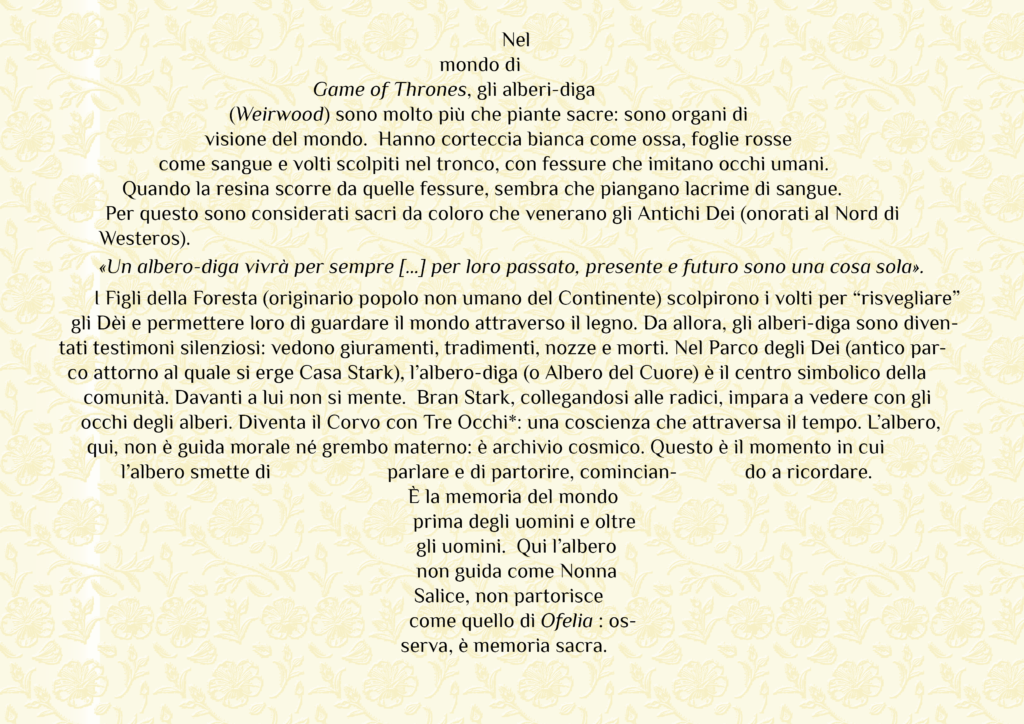 Se nel Labirinto del fauno, l’albero genera e consuma, nel Trono di Spade, non genera più, ricorda.
