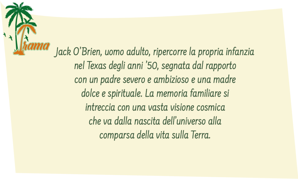 In The Tree of Life, l’albero non è più solo simbolo, ma architettura del senso. Terrence Malick costruisce il film come una meditazione visiva sulla condizione umana, mettendo in dialogo microcosmo (la famiglia) e macrocosmo (l’universo).
